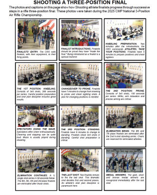 2The IOC and ISSF recently announced that starting in 2026, 50m Rifle Three-Position finals will be shot in one position only, standing. This decision likely will impact CMP and possibly Junior Three-Position Air Rifle finals rules in future years with the possibility that most finals will be single-position finals.