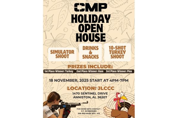 ANNISTON, Ala. – On Tuesday, Nov. 18, the Civilian Marksmanship Program (CMP) welcomes you to tour the Judith Legerski CMP Competition Center for our Holiday Open House!
