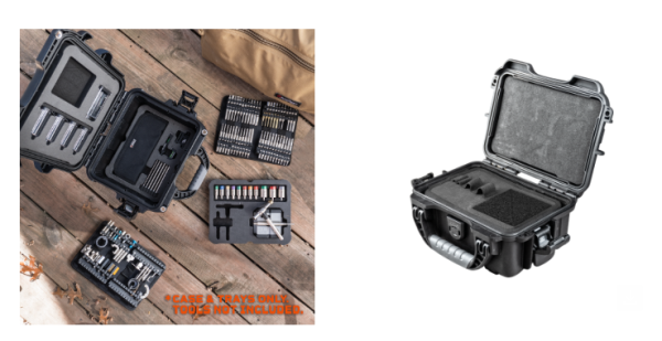 The Fix It Sticks Nanuk® 905 Case is built to hold nearly every tool that Fix It Sticks makes while keeping them securely in place and protected. The custom-cut foam trays, molle panels with bit holders allow customized organization and workflow. An impact-resistant ABS shell, water-resistant and dust-proof seal protect all the tools from impacts, water, dust, etc. This Nanuk 905 case is compact for the amount of Fix It Sticks tools it can carry, weighing under 10 lbs full loaded* and measuring 13” wide x 11” tall x 6.5” deep.
