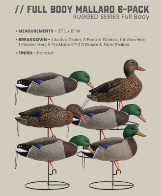 - Includes: 4 Drakes (1 active, 3 feeder), 2 Hens (1 active, 1 feeder), 6 TruMotion™ 2.0 Bases & Field Stakes