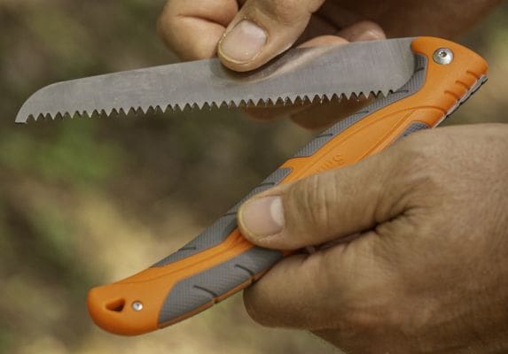 The next step is to skin the deer. If you do this right away, it will allow the meat to cool quickly. It’s also easier to skin when it is still warm. We usually hang the deer upside down to allow blood to drain. We skin from the back legs to the head, helping keep hair off the meat. Your first cuts will be around the bends of the rear legs. Once you do that, make a cut down the legs to the belly. Start slowly cutting the hide from the meat. Once you get the legs done, you should be able to pull down on the hide and slowly peel it away from the meat. Use your knife to guide the hide away from the meat. Having the proper tools can make skinning a deer very simple. I keep the Smith’s Edgesport Field Dressing Kit at my cabin, so we have it when needed. It has a skinning knife, two boning knives, and a sharpener.