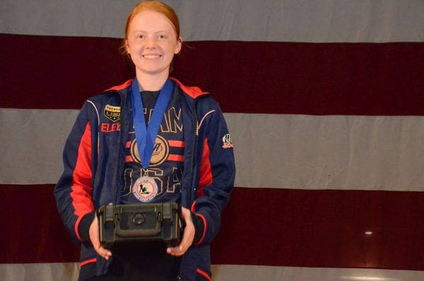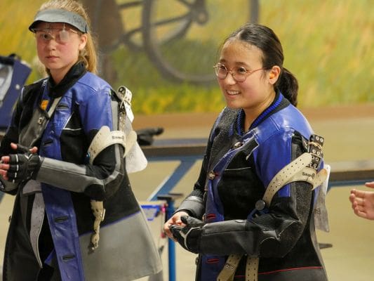 During the JO match, Emme Walrath, 15, of Kenosha, Wisconsin, and Katie Zaun, 18, of Buffalo, North Dakota, gave spectators in Ohio quite a show during their respective final. On the last elimination shot, Zaun led Walrath by 1.2 points, only needing to maintain her lead to claim the win. After each athlete sent her pellet downrange, the monitors displaying scores for onlookers in the range showed a score of 9.6 for Zaun and an incredible 10.8 for Walrath – tying it up and forcing a shoot off. As the audience members cheered on, Zaun and Walrath loaded and fired one more shot.