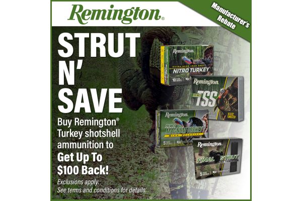 LONOKE, Ark. – March 5, 2026 – Remington Ammunition recently announced its Strut N’ Save rebate, which offers consumers the chance to buy Remington Turkey shotshell ammunition and get up to $100 back. This promotion runs through May 31, 2026.