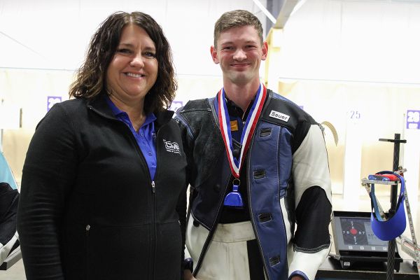 In another homecoming, SGT Ivan Roe, 29, of the U.S. Army Marksmanship Unit (USAMU) led the 60 Shot Rifle Open competition, edging a win over Elizabeth Schmeltzer, 26, of Sandusky, OH. Roe’s USAMU teammate, SSG Brandon Muske, 30, earned the third place position.