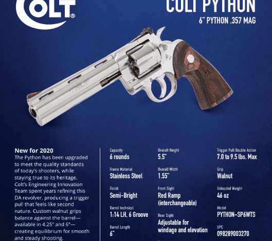 “We know the Colt Python is one of the most beloved and collected firearms in American history, and its re-release has long been demanded by enthusiasts,” said Justin Baldini, Product Director at Colt. “We took our time on R&D – we needed to be sure the look and performance of this redesign lived up to its legendary name and kept its impeccable reputation for quality and accuracy. This new Python lives up to the legend in every way.”