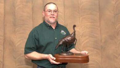EDGEFIELD, S.C.—The National Wild Turkey Federation presented Jason Mitchell, Arkansas Game and Fish Commission wildlife biologist, with the Joe Kurz…