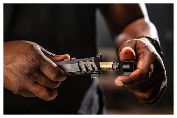 “Even if you have the best comp in the world that results in virtually zero felt recoil, it’s still a simple fact that most compensated guns are difficult to disassemble for routine maintenance. This was top of mind for us as we developed the FN compensator,” said Chris Johnson, Senior Product Manager, Pistols, for FN America, LLC. “Our team evaluated the more traditional attachment methods but opted to explore something new so that customers who purchased a CC Edge pistol would be able to disassemble both the pistol and compensator quickly for easy maintenance. Ultimately, we settled on this quick detach design that uses a compressed spring and lock ring within the compensator that mates to locking lugs cut into the barrel. It’s a future-forward idea and we’re excited about the potential impacts this has for our industry for other barrel attachments.”