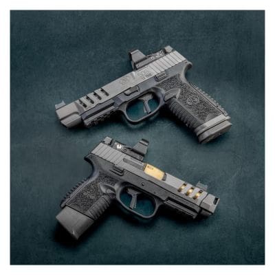 The micro-red-dot-ready pistol includes FN’s patented Low-Profile Optics-Mounting System™, allowing users to mount more than 10 different MRDs, without the need for a gunsmith. A green fiber optic front sight and low glare blacked out rear sights co-witness with the most popular optics.