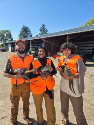 ODFW — together with its partners and donors, including the NWTF — provided funding that went directly toward purchasing pheasants for the event. Throughout the weekend, E.E. Wilson Wildlife Area staff, Hunters of Color and North American Versatile Hunting Dog Association (NAVHDA) volunteers provided instruction on upland bird hunting basics, shotgun safety and shooting techniques, as well as guided hunts in the field. NAVHDA also contributed 10 volunteers with trained dogs to flush birds and mentor participants.